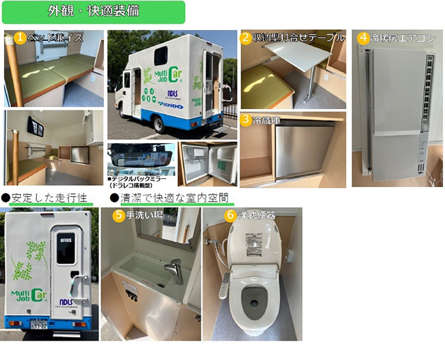 - デスクカーは工事現場で事務作業を行うことができる車両です。